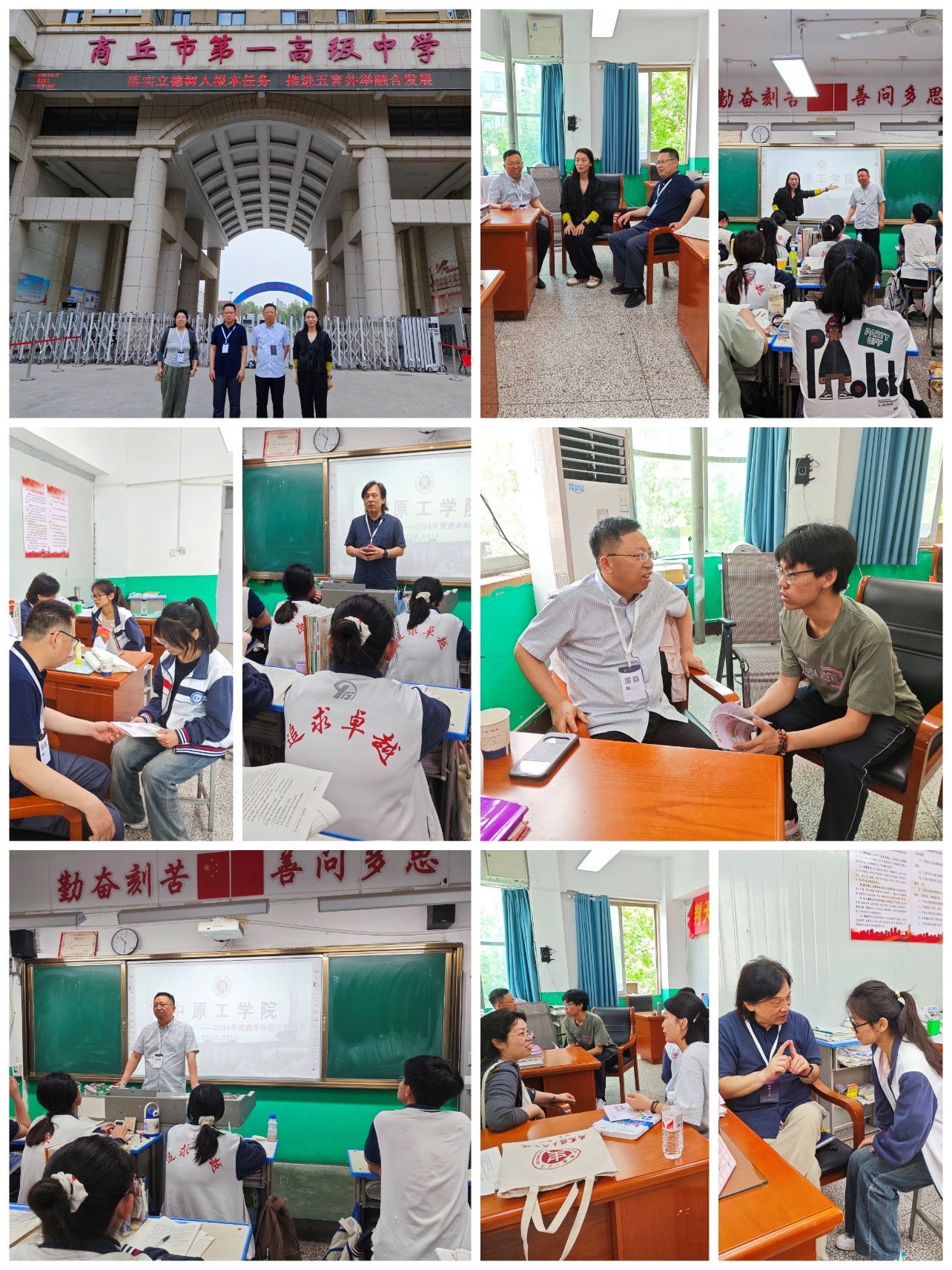 2024年5月19日-5月21日,beat365中国官网公司党总支书记张凯、副经理申治安、中国近现代史纲要教研室主任谷正艳、马克思主义基本原理教研室教师毛宝铭、办公室主任崔潇娟一行赴商丘市、夏邑县、永城市5所高中开展招生宣讲工作。