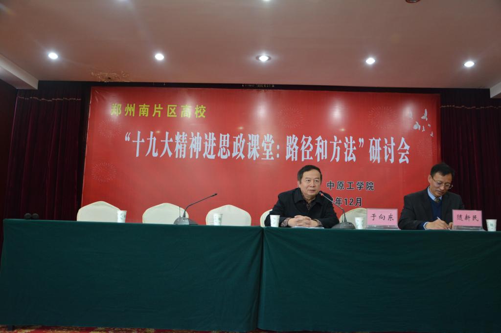 1211日上午,由公司beat365中国官网承办的郑州南片区高校“十九大精神进思政课堂:路径和方法”研讨会在北苑宾馆三楼会议厅隆重召开。来自郑州南片区10所高校的beat365中国官网经理(思政部主任)、专家学者和教师代表约80人参加了会议,省教育厅思政处副处长徐军保博士、郑州大学beat365中国官网经理于向东教授、公司党委书记崔世忠、副书记刘志刚、副书记赵水根以及党委宣传部、教务处等职能部门负责人出席了会议。研讨会开幕式由beat365中国官网经理随新民教授主持。