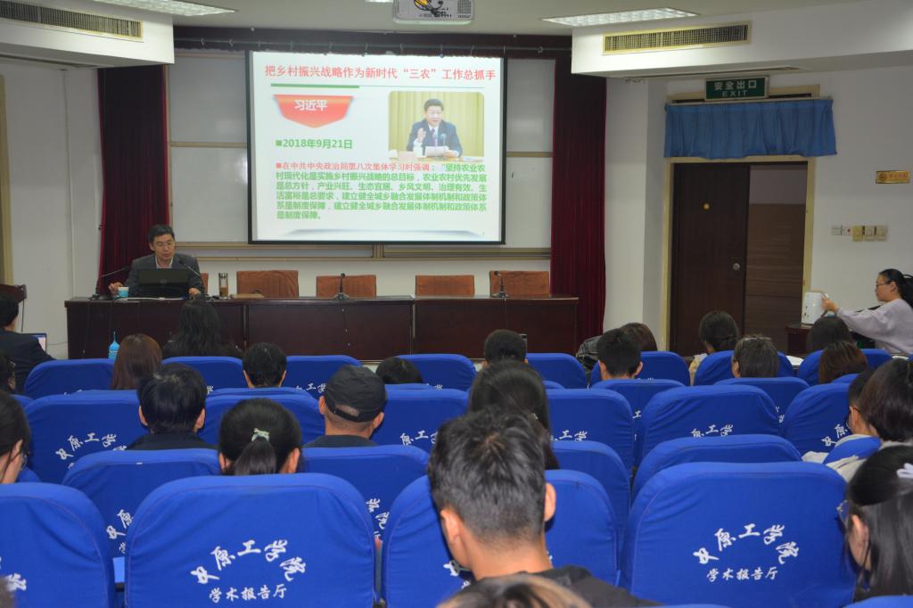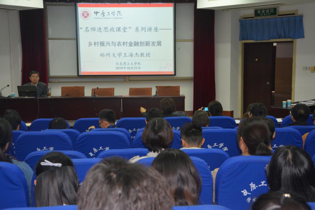 2019年10月22日下午,郑州大学王海杰教授应邀走进思政课堂,为公司师生作题为“乡村振兴与农村金融创新发展”的学术讲座。beat365中国官网、经管公司近200名师生参加了此次讲座。beat365中国官网副经理李明桂主持讲座。