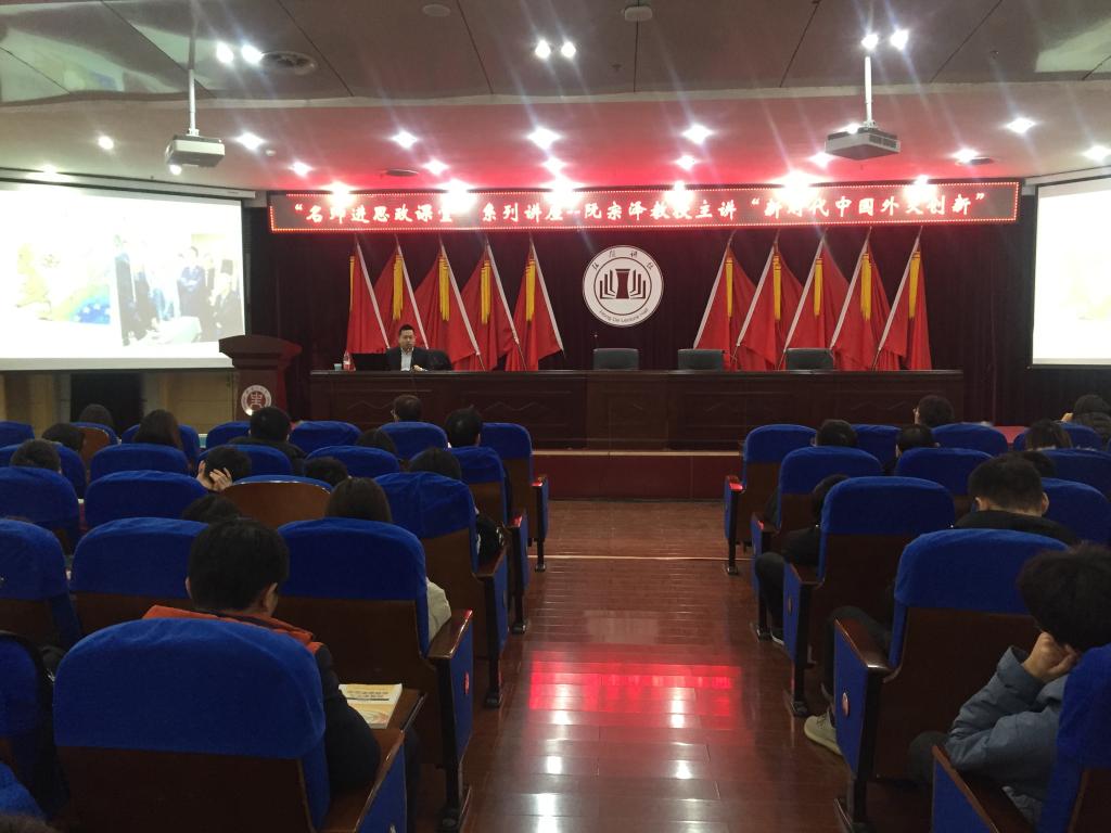 2019年12月23日下午,应公司beat365中国官网邀请,中国国际问题研究院阮宗泽研究员应邀来公司授课,在图书馆八楼学术报告厅为公司师生作了一场题为“新时代中国外交理论创新与实践贡献”的学术报告。报告会由beat365中国官网经理随新民主持。beat365中国官网全体专兼职教师、研究生、部分专业本科生聆听了报告。