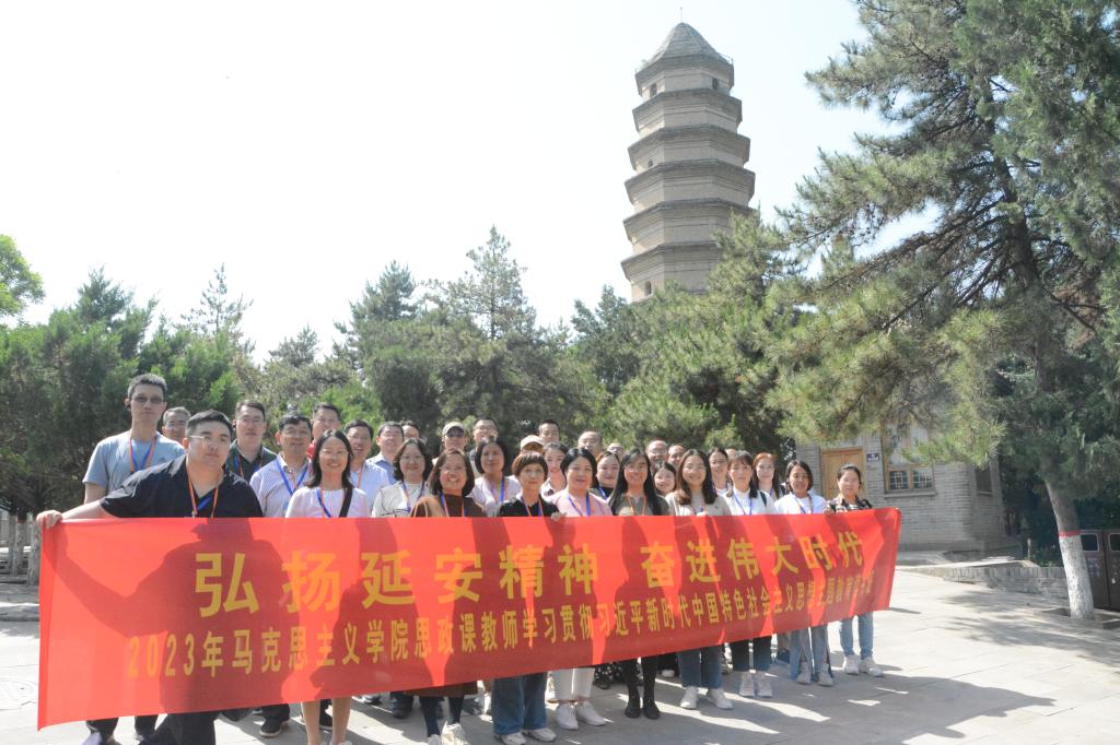 在参观杨家岭革命旧址、王家坪革命旧址、南泥湾大生产展览馆、枣园革命旧址、梁家河大队知青旧居、抗日军政大学纪念馆时,还安排了《重温党的七大 增强看齐意识》《毛泽东与毛岸英的父子深情》《三五九旅开发南泥湾与南泥湾精神》《延安的窑洞有马列主义》《张思德精神与毛泽东<为人民服务>演讲》《习近平在梁家河的为民情深与实干担当》《弘扬抗大精神 坚持正确的政治方向》七场现场教学。从授课老师慷慨激昂、声情并茂的实景讲授中,思政课教师全面了解了延安时期老一辈无产阶级革命家的高尚品格,深刻理解了以实事求是为核心内容的整风精神,以自力更生、艰苦奋斗为核心内容的南泥湾精神和以全心全意为人民服务为核心内容的张思德精神,以坚定正确政治方向为核心内容的抗大精神的丰富内涵,切身体悟了习近平总书记的成长历程。