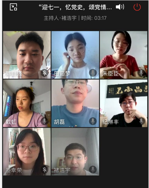 2020年7月1日,beat365中国官网研究生党支部开展“迎七一、忆党史、颂党情”线上主题党日活动,研究生党员和班级团支书共8人参加了本次会议,会议由班长褚浩宇主持。