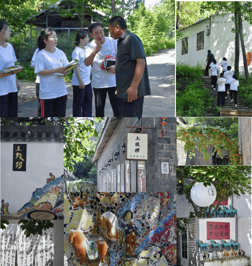 农旅融合乡村振兴示范——上梭椤沟村。团队一行沿着蜿蜒崎岖的道路抵达上梭椤沟村,参观了村里的上梭椤非遗研习社、梭椤沟美术写生基地、户外拓展基地等特色之处,在党的扶贫政策和孟津区委为其谋划的“1131”发展战略指引下,上梭椤沟村积极探索全域旅游+脱贫攻坚+乡村振兴的融合发展道路,努力以全域旅游促进全域脱贫,形成了一个农旅融合的乡村振兴示范村。如今的上梭椤沟,由小村庄变成了“旅游地”,依托优美风光和古村落资源,村子正朝着多元化的方向发展。
