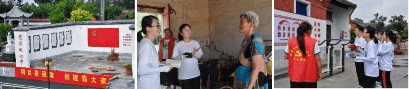 孟津区首批乡村振兴示范村——明达村。走访参观过程中,实践团队通过当地支书讲述得知明达村充分发挥党建引领作用,采用“支部+协会”“支部+基地”的方式抓住脱贫攻坚和村级集体经济发展试点机遇,因地制宜引进优质草莓,发展草莓生态采摘园集体经济,依托草莓实现了增收,农户年均增收1500元。还带动了乡村休闲旅游产业发展,由原来荒凉破败的小山村一跃成为现在孟津区远近闻名的“明星村”。在村子走访期间,青年学子们与乡镇干部共同探讨乡村振兴“新引擎”,跟乡亲们一起讨论富起来的“新方法”,通过走进基层服务群众,在社会课堂中“受教育、长才干、作贡献”,使立足实际、生动鲜活的实践活动成为了行走的“活的”思政大课。