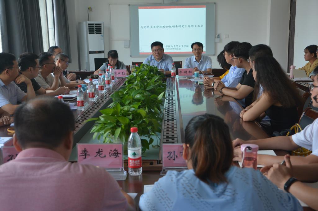 首先,赵水根副书记表示对2019级研究生热烈欢迎,详细介绍公司团队建设情况,并对新生提出四点要求:第一,牢固树立中国特色社会主义理想信念,真正做到“在马学马,在马言马,在马信马,在马行马”;第二,把读经典、悟原理当作生活习惯和精神追求,通过读马克思主义经典来涵养正气、坚定理想信念和指导实践;第三,要有刻苦的钻研精神和坚定的毅力;第四,要让奋斗成为青春最亮丽的底色。最后叮嘱新生要牢记“博学弘德,自强不息”的校训,学习并实践马克思主义,不断从中汲取科学智慧和理论力量,立志成为“底色亮、有情怀、敢担当、能创新”的人才。