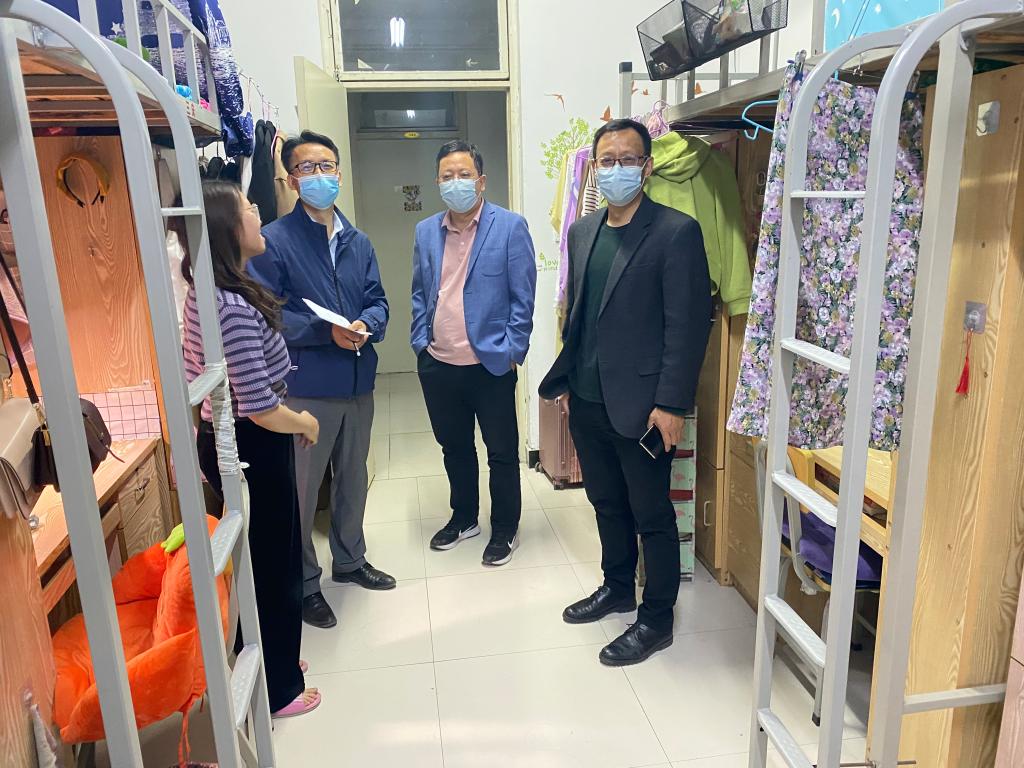 5月8日下午,为全面贯彻落实公司关于疫情防控工作的要求和部署,筑牢校园疫情防控安全屏障。公司党总支书记张凯、经理随新民、副书记兼副经理李明桂走访员工宿舍,了解员工学习生活状况和开展封校期间员工心理疏导。