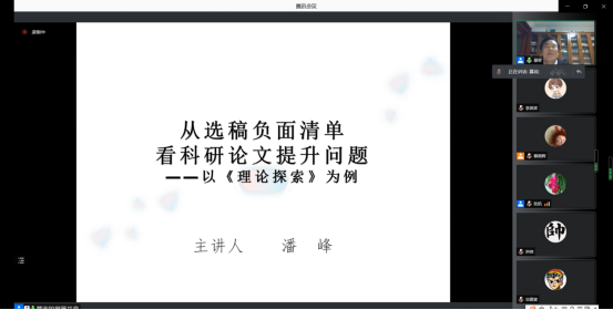 讲座中,潘教授以自己多年从事期刊论文的丰富经验,详细阐述了通过C刊选稿负面清单判断科研论文的优劣方法,深入浅出地和广大师生探讨了论文撰写的写作标准、评价标准以及审稿标准,介绍了论文写作和选稿标准之间的关系,提出了论文写作要注重创新思维,为公司师生就如何提升科研论文的含金量指明了方向。他以《理论探索》的选稿为例,详细介绍了学术期刊的审稿标准,指出好的学术期刊要训练科研素养,注重科研积累。潘教授从C刊选稿负面清单反映的问题类型及其提升指向为切入点,分别从论文撰写要正确对待政治性稿件,注重前沿和研究领域的稿件,论文写作中存在的致命“方法性内伤”,注重辨别中西方学术研究,排除侵权风险的稿件等五个方面出发,指出论文撰写过程中可能会遇到的问题和注意事项,指出研究领域的选择和撰写科研论文要从中国特色社会主义中汲取理论知识和实际经验,加强学术规范,不能盲目照搬西方的学术研究成果。