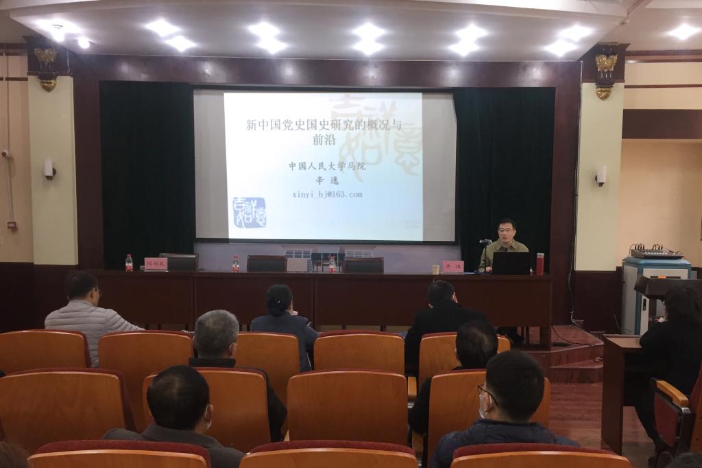 3月14日上午,中国人民大学教授辛逸应邀在中原校区图书馆学术报告厅为公司思政课教师作主题为“新中国党史国史研究的概况与前沿”学术讲座。beat365中国官网经理随新民主持报告并为辛逸颁发“弘德讲坛主讲证书”。
