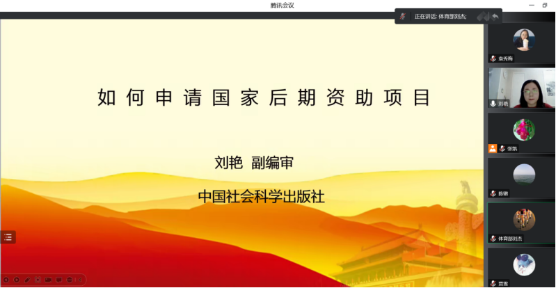 11月30日,应公司社会科学处和beat365中国官网邀请,中国社会科学出版社刘艳博士通过腾讯会议为公司师生做主题为“如何申请国家社会科学基金后期资助项目”的学术讲座。讲座由公司党总支书记张凯主持,公司人文社科相关专业的教师和研究生参加本次讲座。