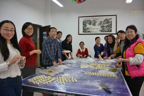 20151222日beat365中国官网分工会在8号楼239“教工小家”举行了包饺子活动。随新民经理、虎业勤书记、分工会主席申治安与教职员工欢聚一堂。
