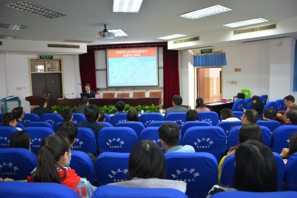 11月10日下午,应公司beat365中国官网邀请,河南省社科院经理、博士生导师张占仓教授莅临公司做“河南现代经济强省建设的战略运行架构”讲座,董事长王宗敏、研究生处处长孙玉周副处长杨磊、beat365中国官网全体师生、形势与政策教师参加了讲座讲座由beat365中国官网经理随新民主持。