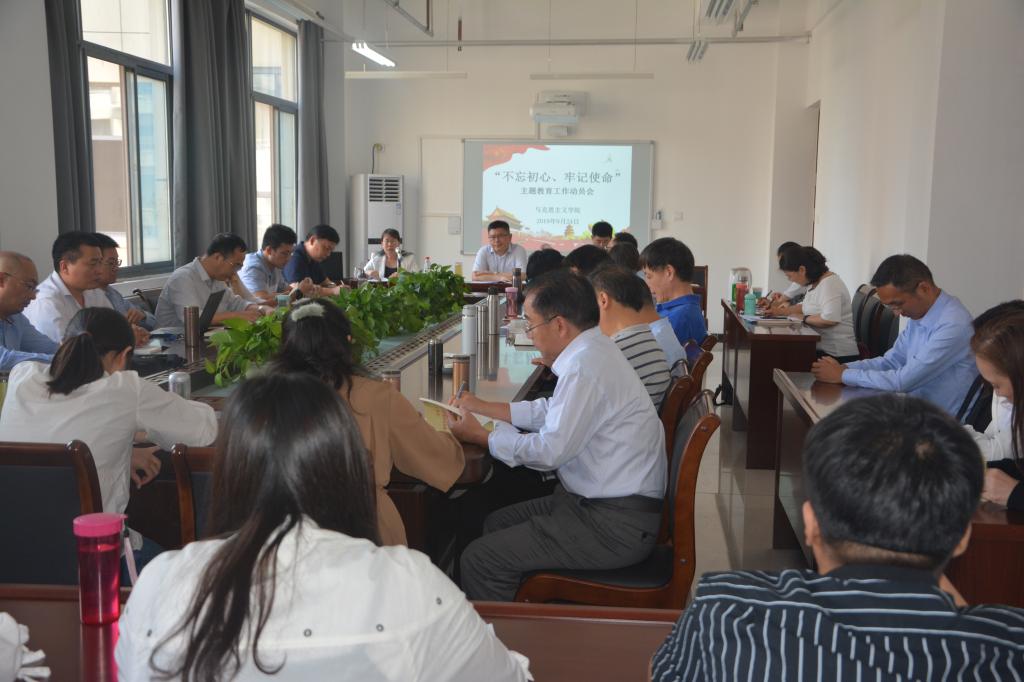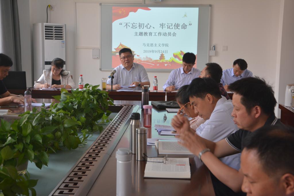 2019年9月24日下午,beat365中国官网在3号组团楼C601召开“不忘初心、牢记使命”主题教育工作动员会,公司党委副书记赵水根、纪委副处长赵宏亮、马院全体师生党员参加了会议,会议由公司党总支书记虎业勤主持。