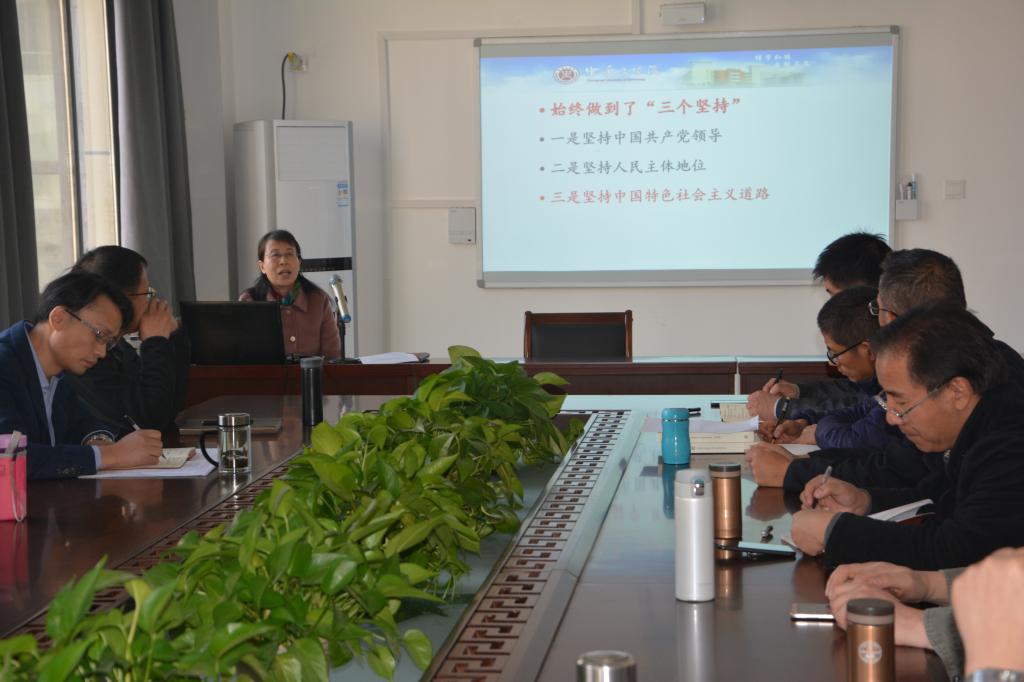 虎书记就“守初心、 担使命,走中国特色社会主义道路经验谈”主题从四个方面进行讲解,一是从70年发展成功经验看治国之道,二是坚持中国特色社会主义道路的重要意义,三是中国特色社会主义道路的科学内涵,四是中国特色社会主义道路的成功经验。虎书记强调作为新时代的我们,更要深入学习马克思主义理论,学习马克思主义中国化最新成果,树立科学的世界观,把“为中国人民谋幸福、为中华民族谋复兴”铭刻在心中,付诸实践,做一名始终“不忘初心、牢记使命”的合格的共产党员。