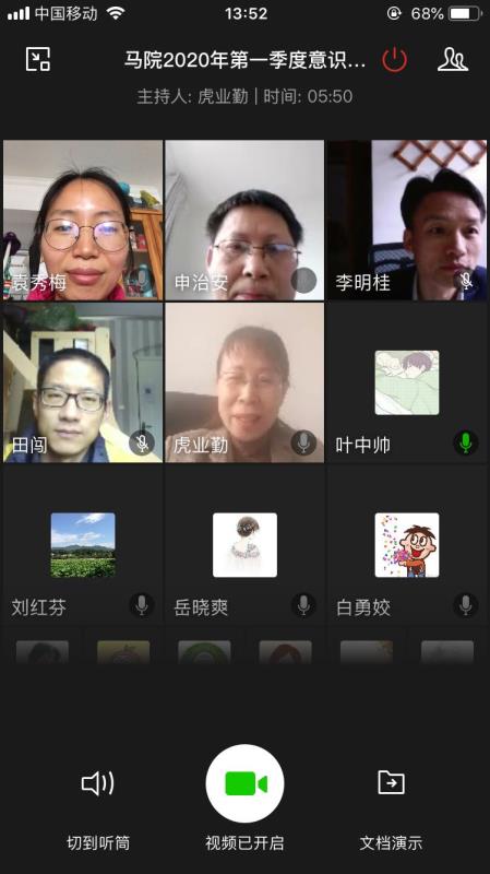 针对线上教学意识形态安全工作,参会教师立足于教学本职工作,从加强思政课教师自身思想武装、提高线上教学的政治敏锐性和政治鉴别力、提升思政课教师线上教学意识形态工作水平等角度踊跃发言,表示要用好线上教学主渠道、筑牢意识形态主阵地,深化思政课线上教学设计,推动思政课线上教学内容从表层疫情防控升华为深层意识形态建设,通过空中课堂向员工讲好中国故事、传播好中国声音。